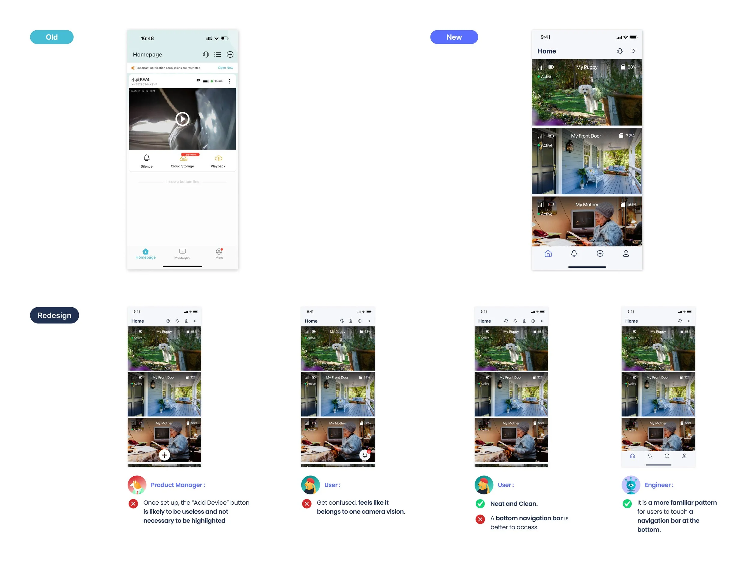 An app redesigned for the security camera users in the U.S. to have a more flattening structure and simple visual style.